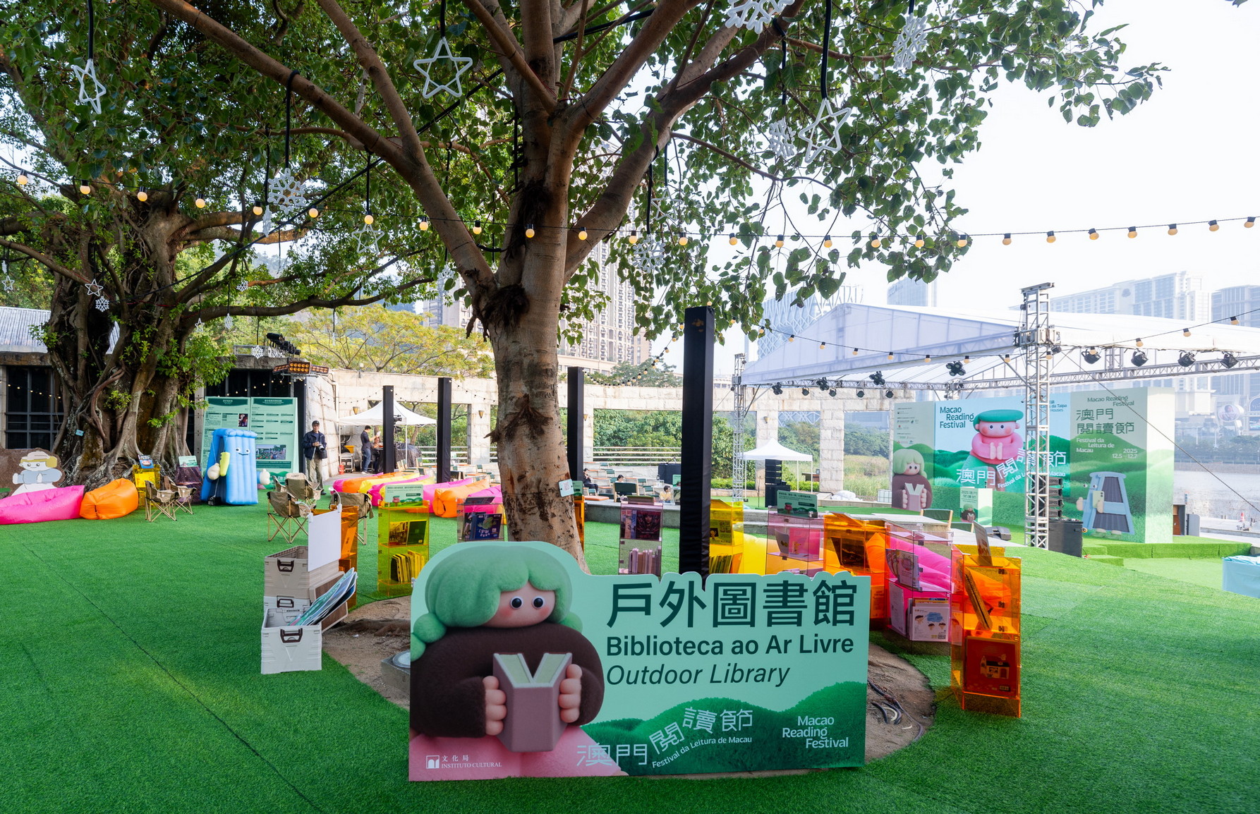 O Festival da Leitura abrange várias zonas temáticas nas Casas da Taipa, proporcionando umas “Férias de Leitura Divertidas” muito refrescantes tanto para a mente como para o corpo. As zonas incluem a “Biblioteca ao Ar Livre” e a “Feira do Livro de Arte e Cultura”, onde o público pode desfrutar de uma experiência de leitura imersiva, no meio da natureza. Haverá também tendas especiais das bibliotecas da Zona da Grande Baía Guangdong-Hong Kong-Macau e da Direcção dos Serviços de Assuntos de Subsistência da Zona de Cooperação Aprofundada entre Guangdong e Macau, em Hengqin, onde serão exibidos conteúdos relacionados com ambas as regiões. Além disso, o evento reúne 25 tendas de produtos culturais e criativos, café e refeições ligeiras, criando uma atmosfera de feira descontraída para todos.
