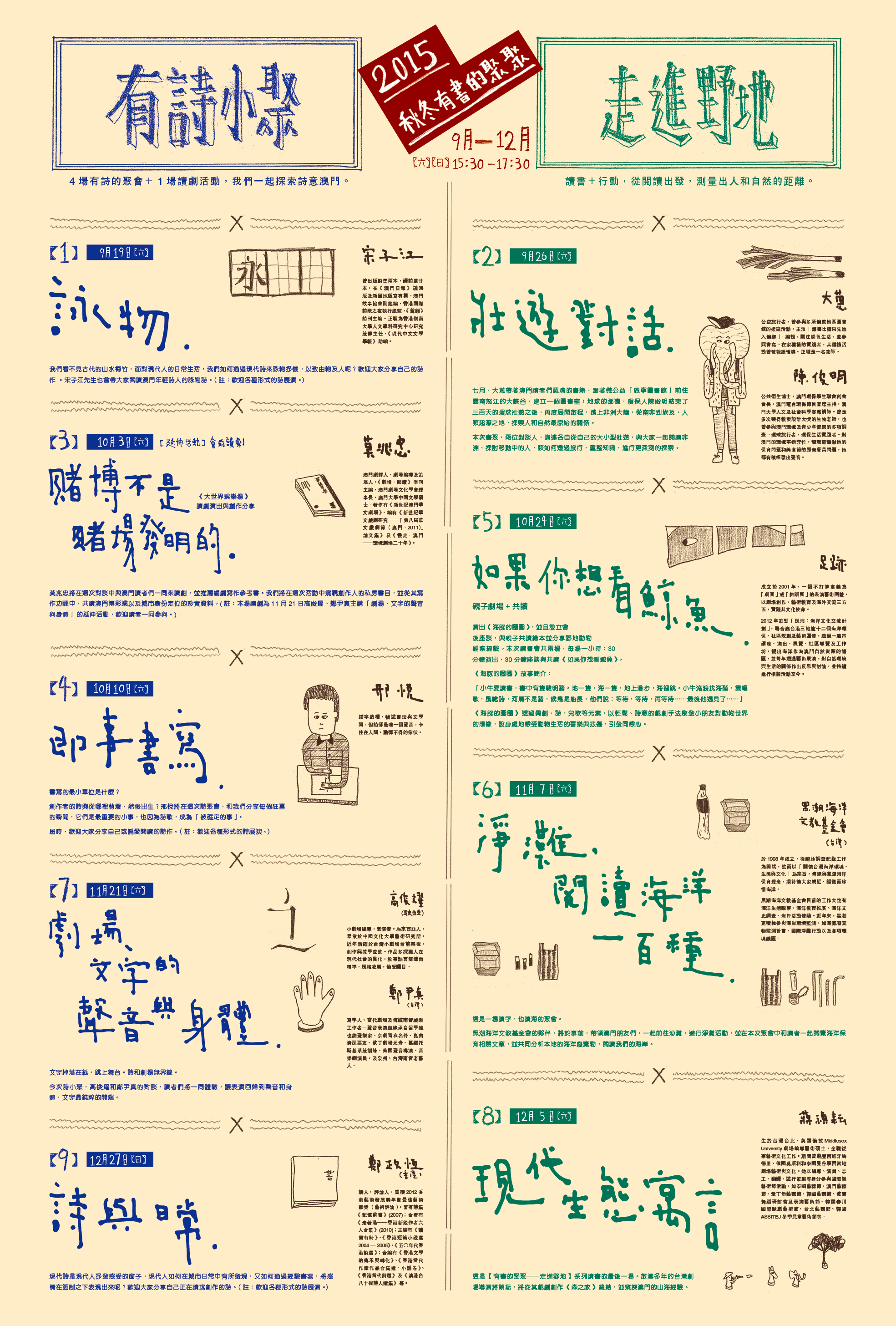 「有诗小聚」为4场诗歌聚会+ 1场读剧活动,冀从共读之中,一起探索诗意澳门,并提供本澳读者朗读或展演自己作品的空间。