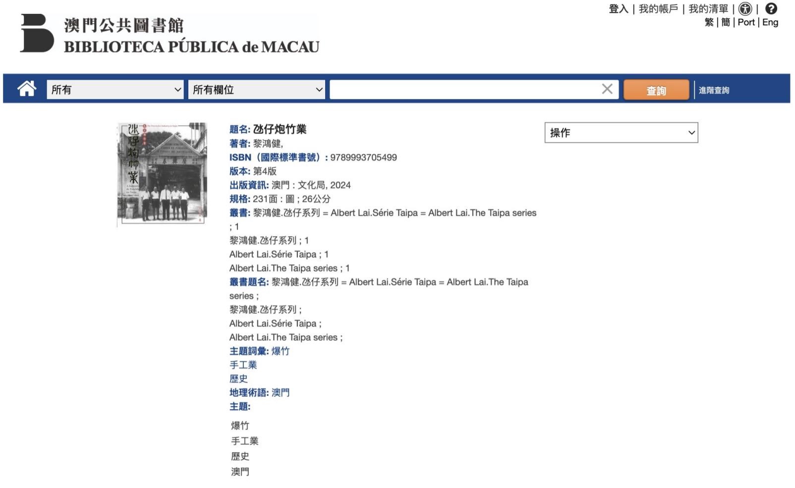 特藏號:有時候,索書號最開首會出現英文字母,代表圖書的資料類型。如M表示澳門資料,J表示中文兒童書,R表示參考書,JR表示兒童參考書等。