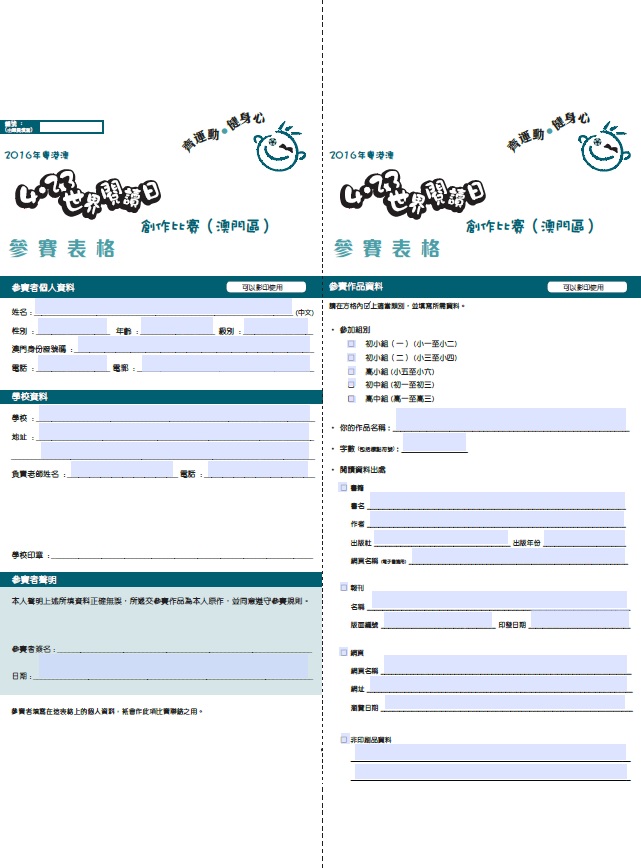 獎項:各組優勝獎10名(可獲頒發書券澳門幣五百元及獎狀)